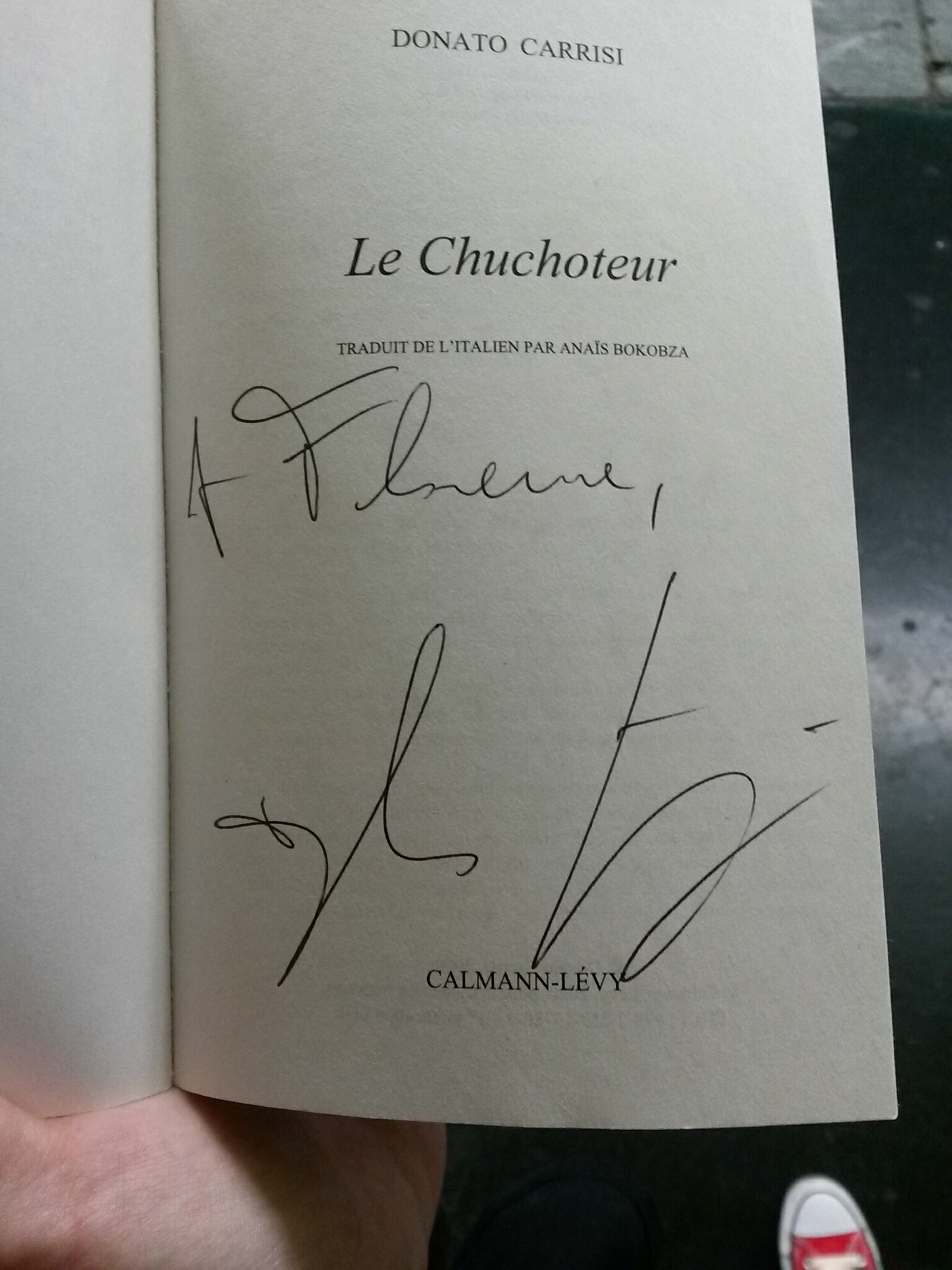Nous avons également découvert qu’avant d’être spécialisé dans le thriller, il écrivait des scénarios notamment pour des séries italiennes. D’ailleurs il a écrit les premières pages du Chuchoteur à la suite d’un livre qu’on lui a conseillé de lire (L’envol des anges de Michael Connelly), il l’a tellement aimé qu’il s’est mis à écrire le scénario d’un thriller, mais on lui a fait comprendre qu’à la télévision italienne ça ne passerait pas. Quelques temps plus tard, il a décidé d’étoffer ce scénario, qui s’est donc transformé en « vrai livre », Le Chuchoteur, qui a fait son succès.